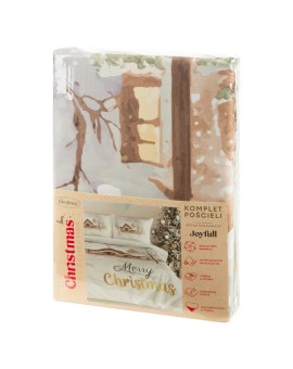 Komplet pościeli satynowej z nadrukiem świątecznym szerokość: 140 cm, długość: 200 cm, kolor: biały, Gramatura: 125 GSM, Skład: satyna, 100% bawełna