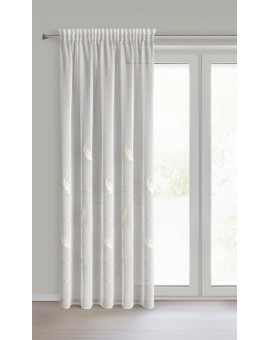 Firana gotowa zdobiona haftem szerokość: 140 cm, długość: 250 cm, kolor: biały, Gramatura: 80 GSM, Skład: 100% poliester