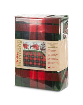 Komplet pościeli z flaneli bawełnianej z nadrukiem świątecznym szerokość: 160 cm, długość: 200 cm, kolor: ciemnozielony, Gramatura: 150 GSM, Skład: flanela, 100% bawełna