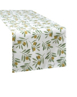 Plamoodporny bieżnik dekoracyjny z ozdobnym nadrukiem szerokość: 40 cm, długość: 140 cm, kolor: biały, Skład: 80% poliester, 20% bawełna