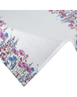 Plamoodporny obrus dekoracyjny z ozdobnym nadrukiem szerokość: 110 cm, długość: 140 cm, kolor: biały, Skład: 80% poliester, 20% bawełna