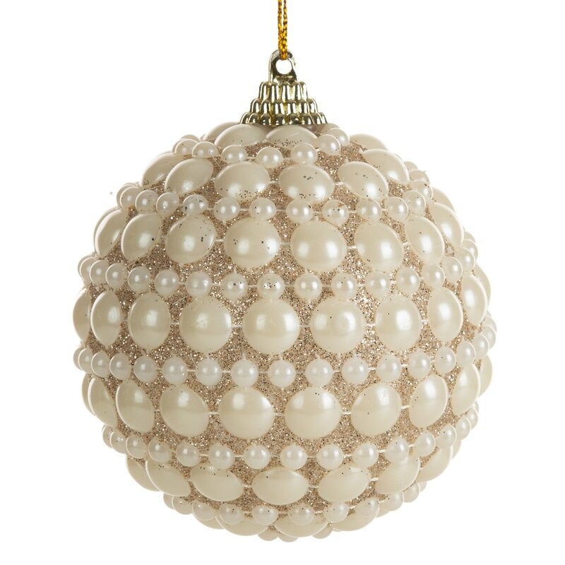 Bombka plastikowa pokryta brokatem zdobiona perełkami kolor: szampański, Skład: tworzywo sztuczne SZT.4