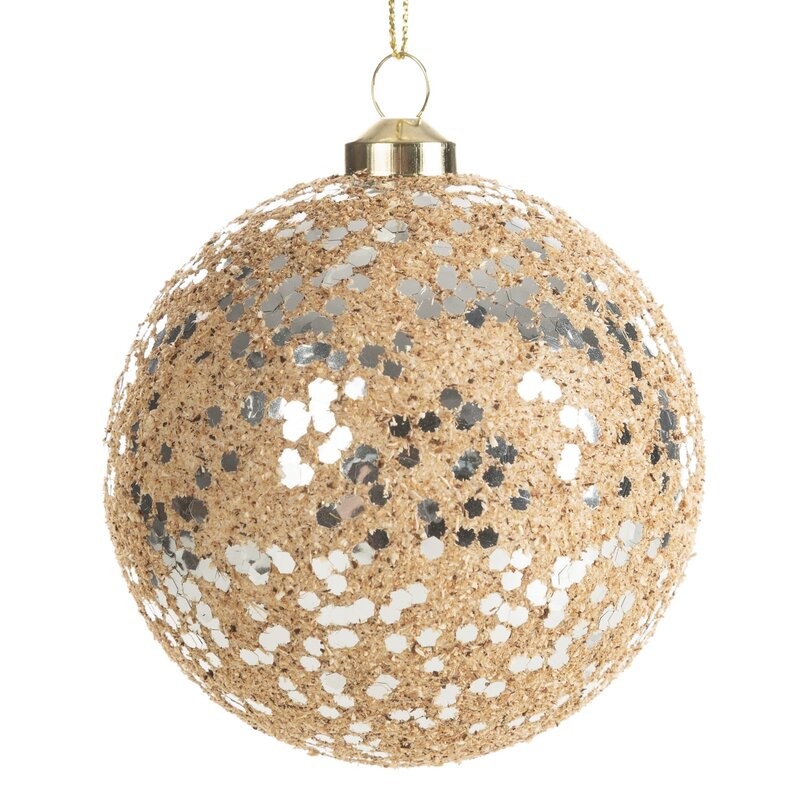 Bombka choinkowa obsypana lśniącym brokatem i cekinami