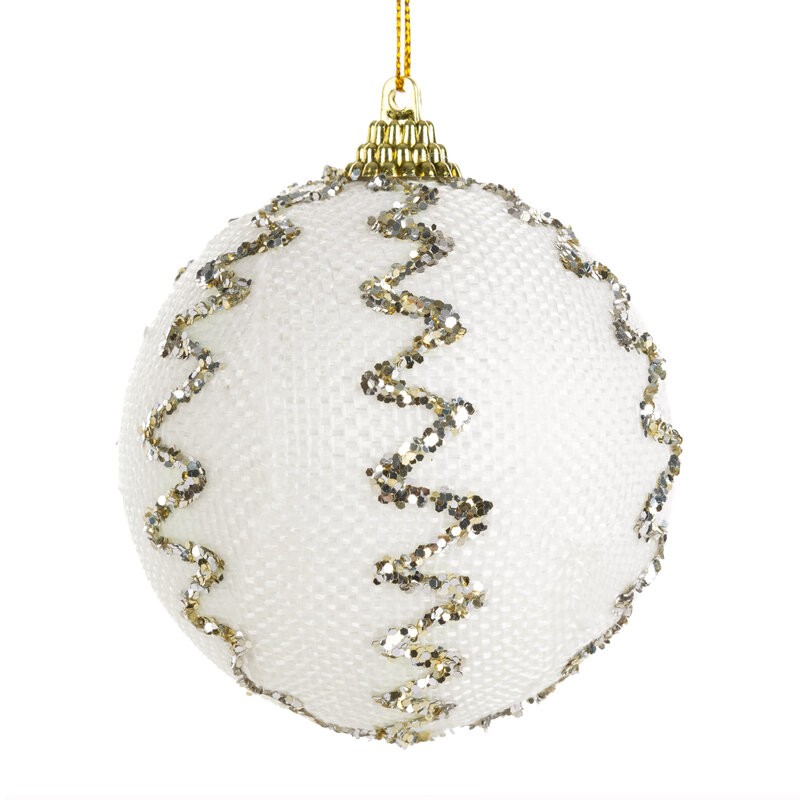 Bombka plastikowa zdobiona drobnymi cekinkami i brokatem kolor: srebrny, Skład: 100% poliester SZT.4