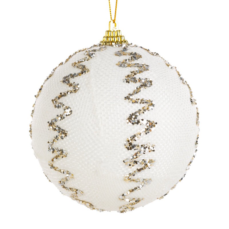 Bombka plastikowa zdobiona drobnymi cekinkami i brokatem kolor: srebrny, Skład: 100% poliester SZT.4