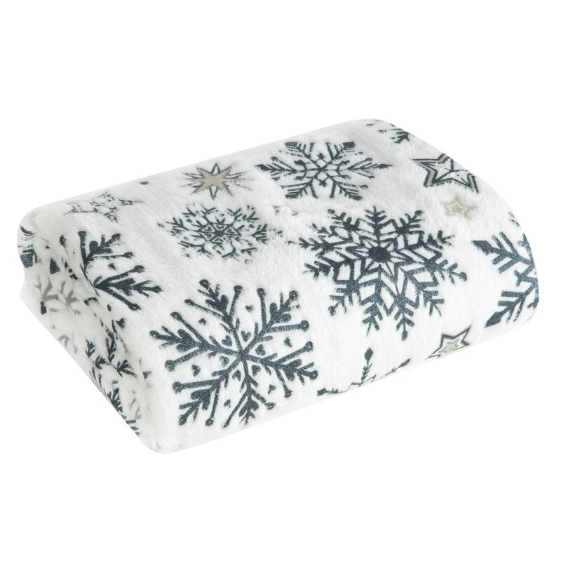 świąteczny koc dekoracyjny szerokość: 150 cm, długość: 200 cm, kolor: biały, Gramatura: 240 GSM, Skład: 100% poliester
