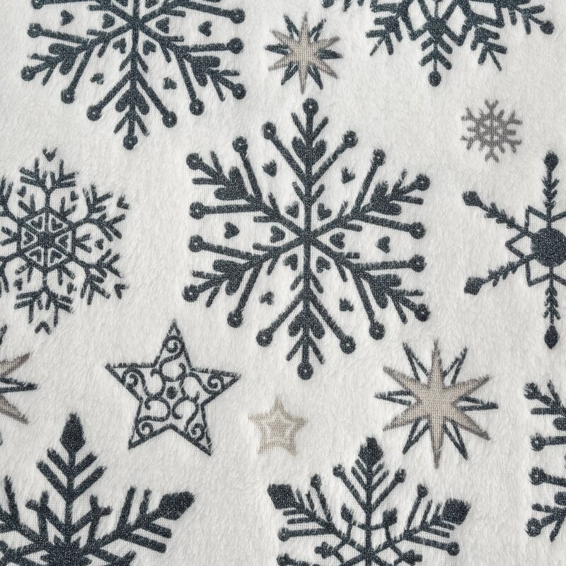 Świąteczny koc typu flano to miękkie i przyjemne w dotyku okrycie, które wprowadzi do wnętrza magiczny, zimowy klimat. Delikatny, błyszczący nadruk śnieżynek dodaje mu elegancji i subtelnego blasku, dzięki czemu koc świetnie sprawdzi się zarówno jako praktyczne okrycie, jak i dekoracja świąteczna.