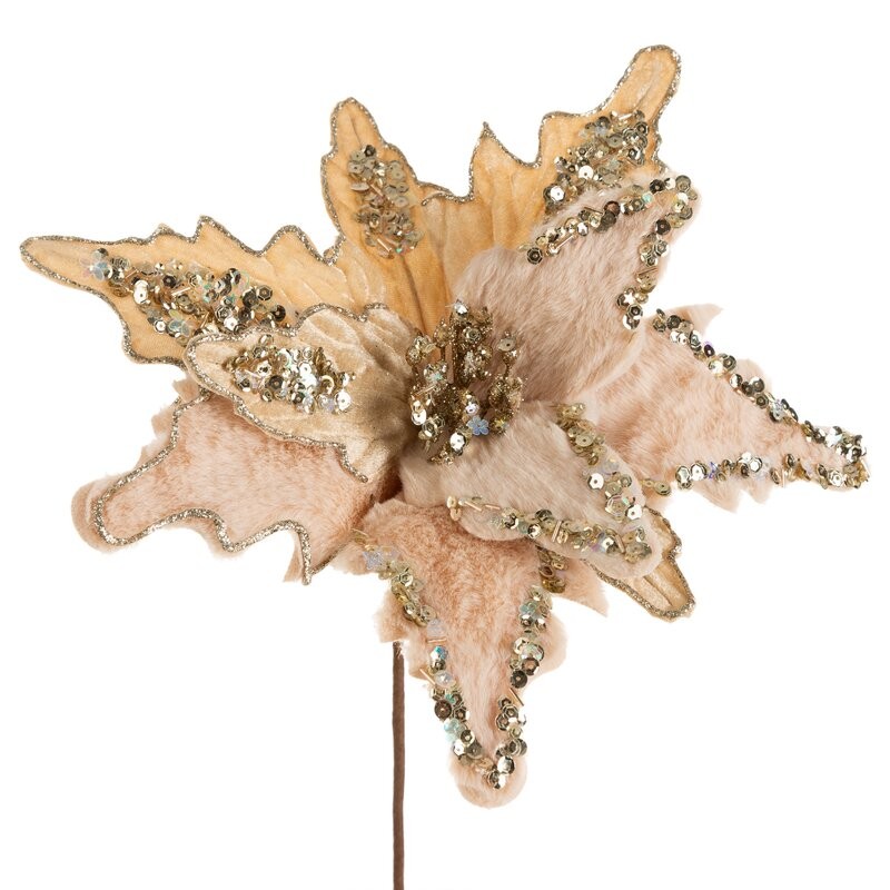 świąteczny kwiat dekoracyjny szerokość: O 39 cm, długość: 35 cm, kolor: beżowy, Skład: 100% poliester SZT.12