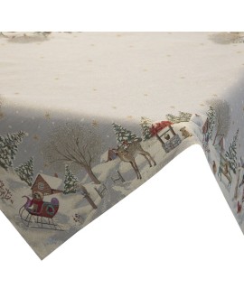Obrus gobelinowy ze świątecznym wzorem szerokość: 140 cm, długość: 180 cm, kolor: naturalny, Skład: 63% poliester, 34% bawełna, 3% akryl