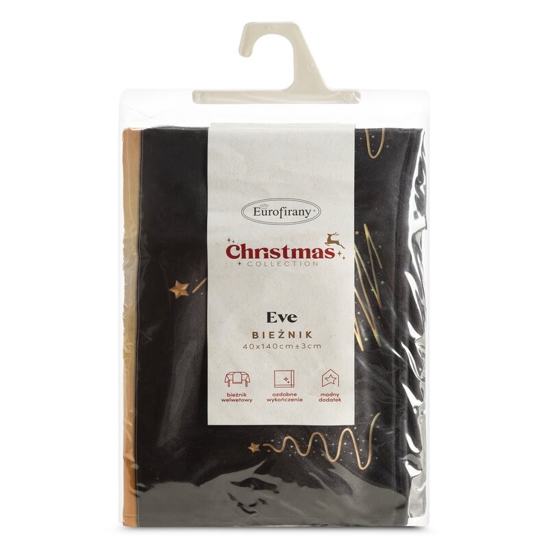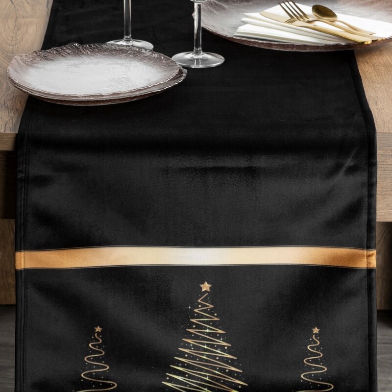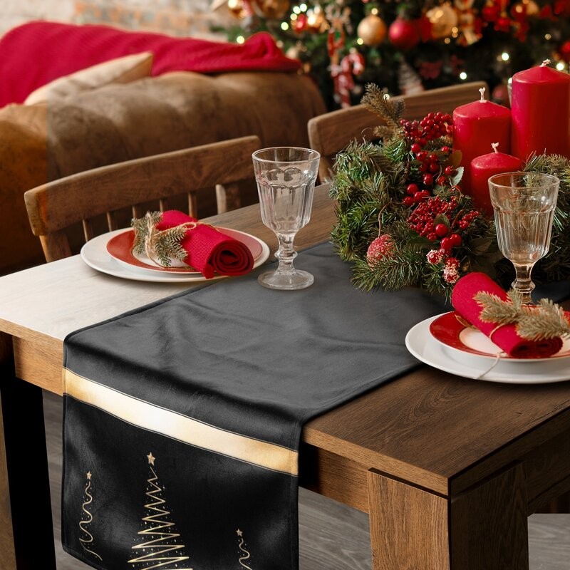 świąteczna welwetowa nakładka dekoracyjna z nadrukiem foliowym szerokość: 85 cm, długość: 85 cm, kolor: czarny, Gramatura: 210 GSM, Skład: 100% poliester