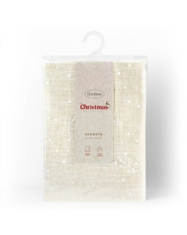 świąteczny bieżnik dekoracyjny szerokość: 85 cm, długość: 85 cm, kolor: beżowy, Gramatura: 200 GSM, Skład: 80% poliester, 20% len