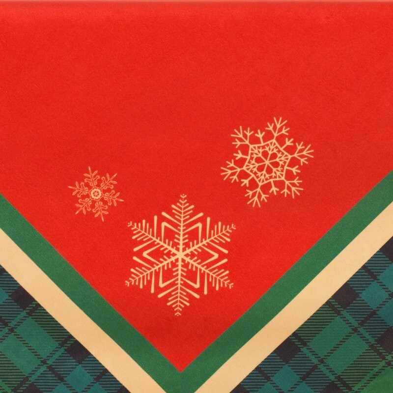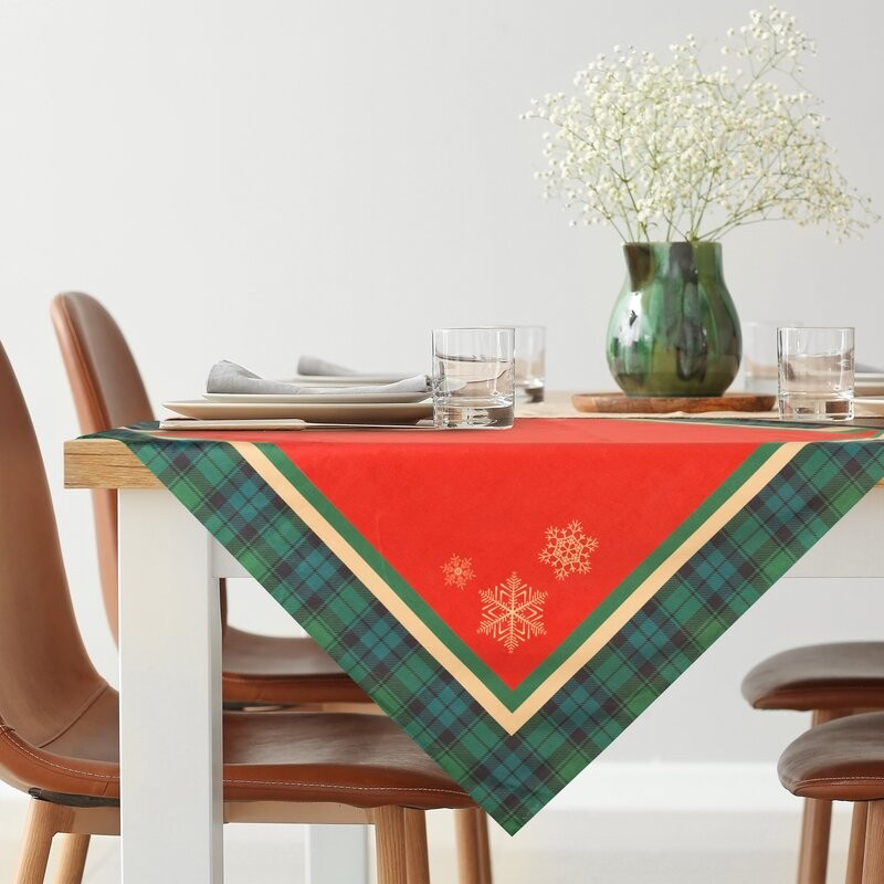 Obrus CHERRY z miękkiej i miłej w dotyku tkaniny welwetowej to dekoracja, która pięknie prezentuje się na stole, podkreślając świąteczny nastrój. Wysoka jakość oraz staranne wykonanie gwarantują satysfakcję z produktu, natomiast świąteczny motyw ze śnieżynkami i elegancka kanta w kratę wprowadzają do wnętrza świąteczny nastrój. Kontrastujące, żywe barwy sprawiają, że dekoracja znakomicie ożywia wnętrze, wprowadzając do aranżacji radosny nastrój.