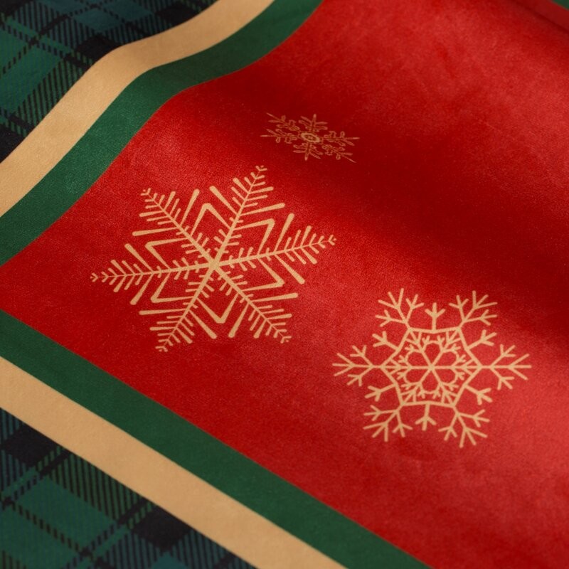 Obrus z miękkiego welwetu z motywem śnieżynek i ozdobną kantą w kratę to doskonały wybór, aby wprowadzić świąteczny klimat do Twojego domu lub mieszkania podczas sezonu świątecznego. Możesz dostosować rozmiar i wzór motywów świątecznych zgodnie z własnymi preferencjami i stylizacją wnętrza.
