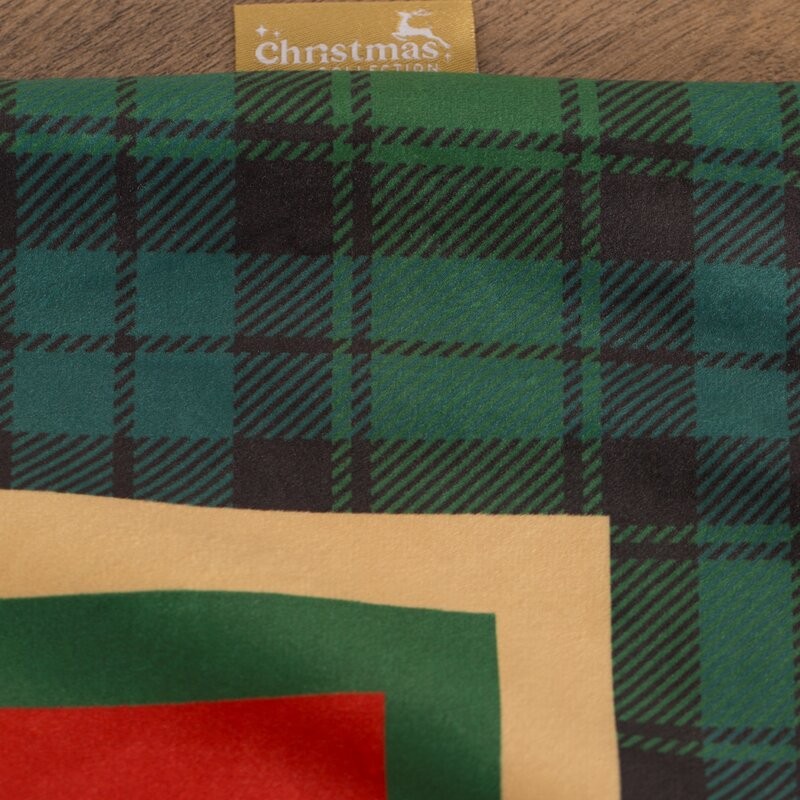Obrus welwetowy HOLLY z motywem świątecznym i ozdobną kantą w kratę