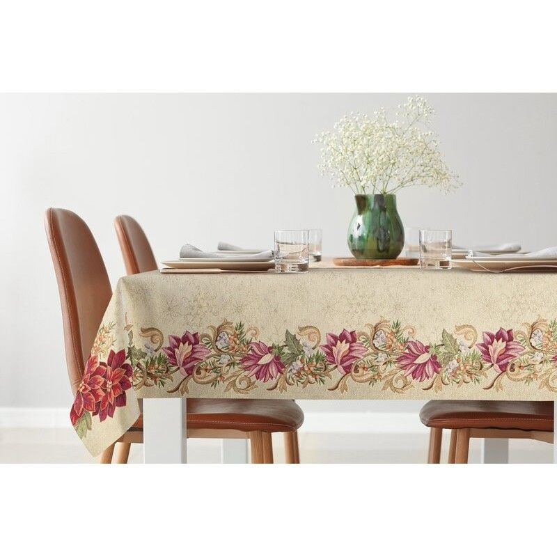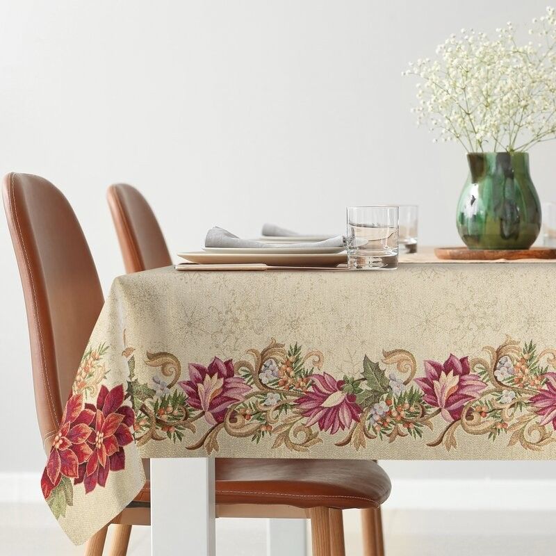 Obrus świąteczny szerokość: 140 cm, długość: 220 cm, kolor: beżowy, Gramatura: 185 GSM, Skład: 100% bawełna