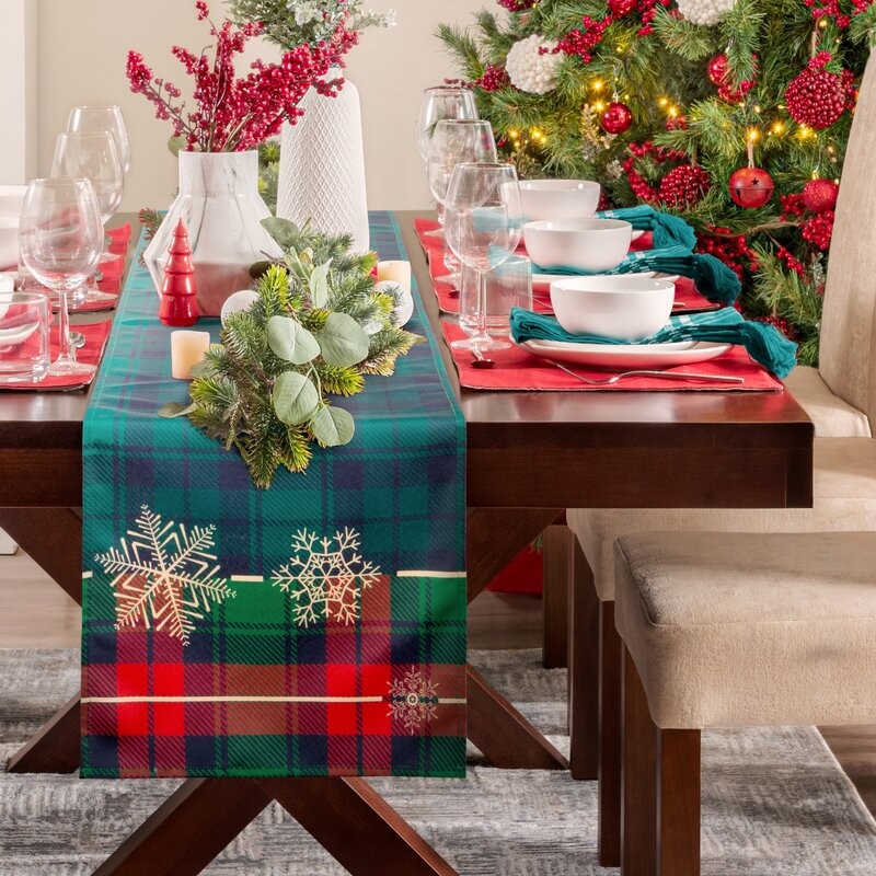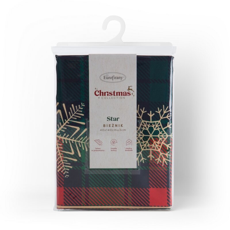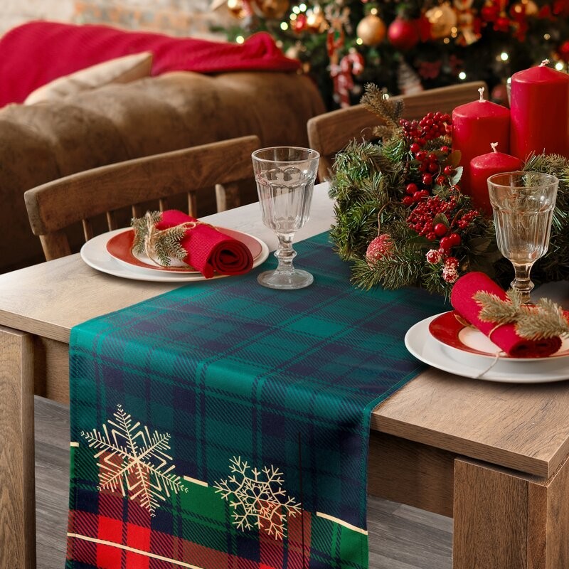 Świąteczny bieżnik STAR z miękkiej i miłej w dotyku tkaniny to dekoracja, która pięknie prezentuje się na stole, dodając wnętrzu ciepła. Motyw kraty połączony z nadrukiem śnieżynek znakomicie wpasowuje się w atmosferę świąt, dzięki czemu dekoracja ożywia aranżację, wprowadzając do wnętrza radosny nastrój. Wysoka jakość tkaniny oraz staranne wykończenie gwarantują satysfakcję z produktu. Bieżnik z motywem świątecznym to doskonały wybór, aby wprowadzić świąteczny klimat do Twojego domu lub mieszkania.