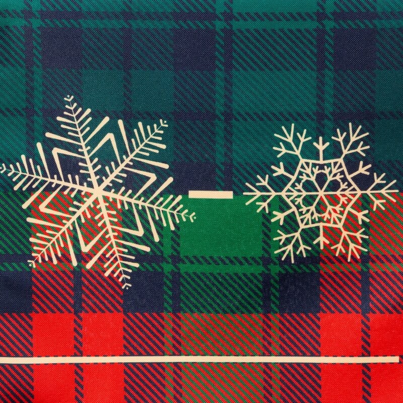 Obrus welwetowy HOLLY z motywem świątecznym i ozdobną kantą w kratę