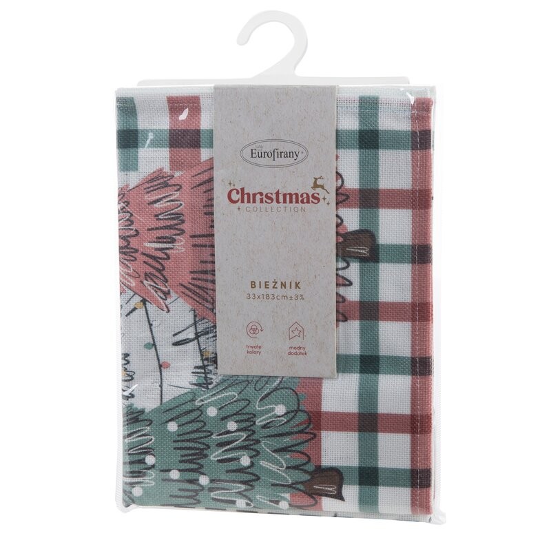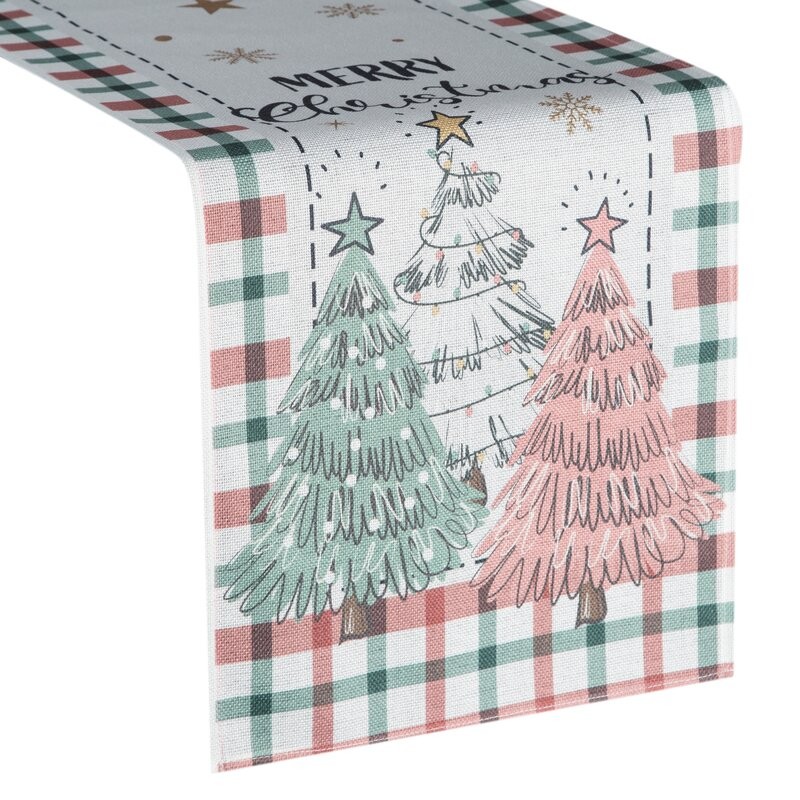 Wprowadź świąteczny nastrój do swojego stołu dzięki naszemu bieżnikowi ozdobionemu uroczym nadrukiem drzewek świątecznych. Delikatny, kolorowy motyw idealnie komponuje się z bożonarodzeniową aranżacją, dodając wnętrzu ciepła i przytulności.