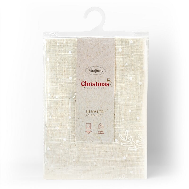 Dodaj elegancji i świątecznego uroku swoim dekoracjom dzięki naszemu obrusowi w strukturze lnu. Wykonany z wysokiej jakości tkaniny lnopodobnej, łączy naturalny wygląd z trwałością, a subtelny zimowy nadruk wprowadza do wnętrza przytulną, świąteczną atmosferę.