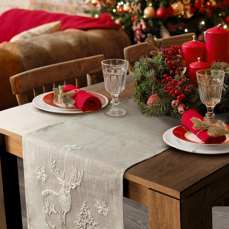 Bieżnik gobelinowy z mieszanki włókien zdobiony świątecznym wzorem