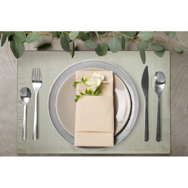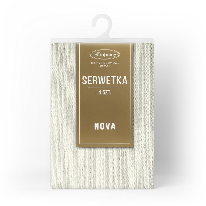Uzupełnij wystrój swojego stołu eleganckim kompletem 4 szt. serwetek z kolekcji Glamo. Każda serwetka została ozdobiona splotem w prążki przetykanym błyszczącą, złotą nicią, co nadaje zestawowi luksusowy charakter i subtelny połysk.