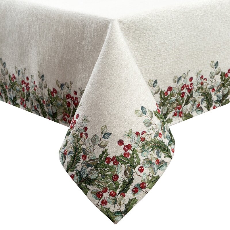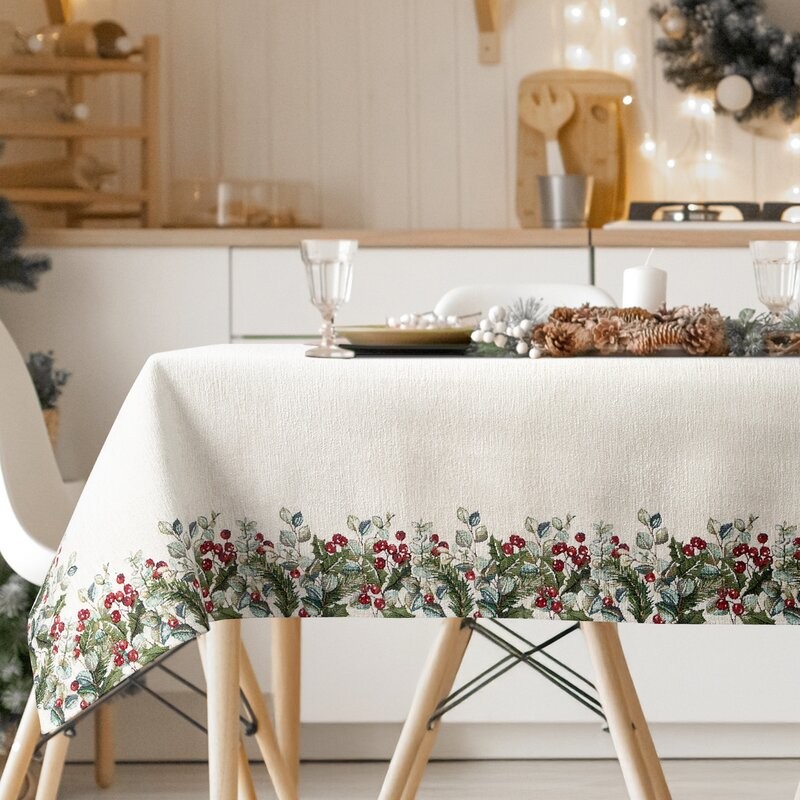 Obrus gobelinowy ze świątecznym wzorem szerokość: 140 cm, długość: 180 cm, kolor: naturalny, Gramatura: 315 GSM, Skład: 53% poliester, 40% bawełna, 4% nić metaliczna, 3% akryl