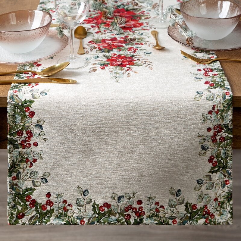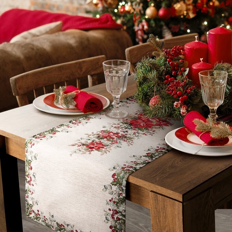 Bieżnik gobelinowy z mieszanki włókien zdobiony wzorem świątecznym