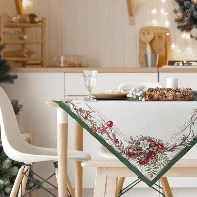 Obrus gobelinowy z mieszanki włókien zdobiony wzorem świątecznym