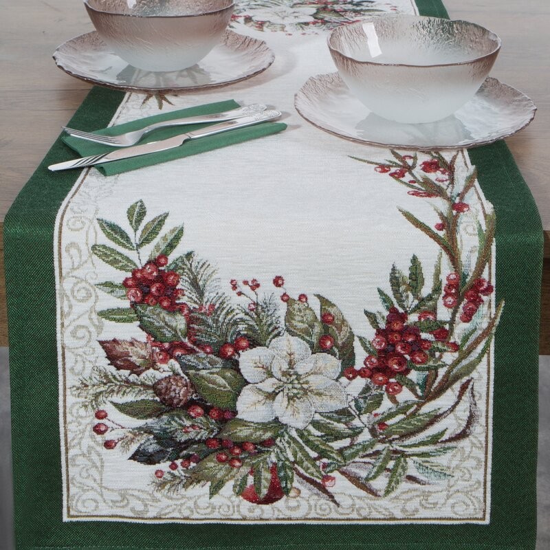 Bieżnik gobelinowy z mieszanki włókien zdobiony wzorem świątecznym