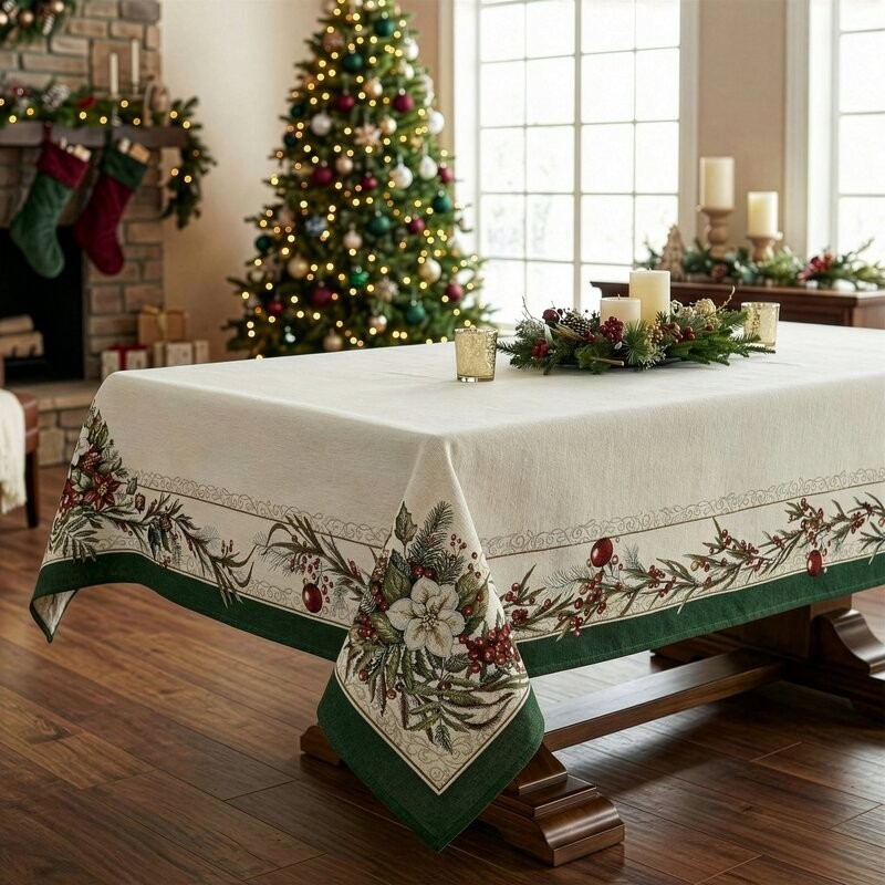 Obrus gobelinowy z mieszanki włókien zdobiony wzorem świątecznym