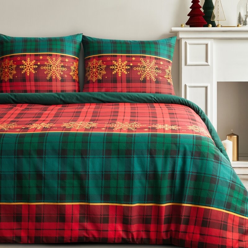 Komplet świątecznej pościeli ROBIN z mikrowłókna zdobiona nadrukiem zimowym