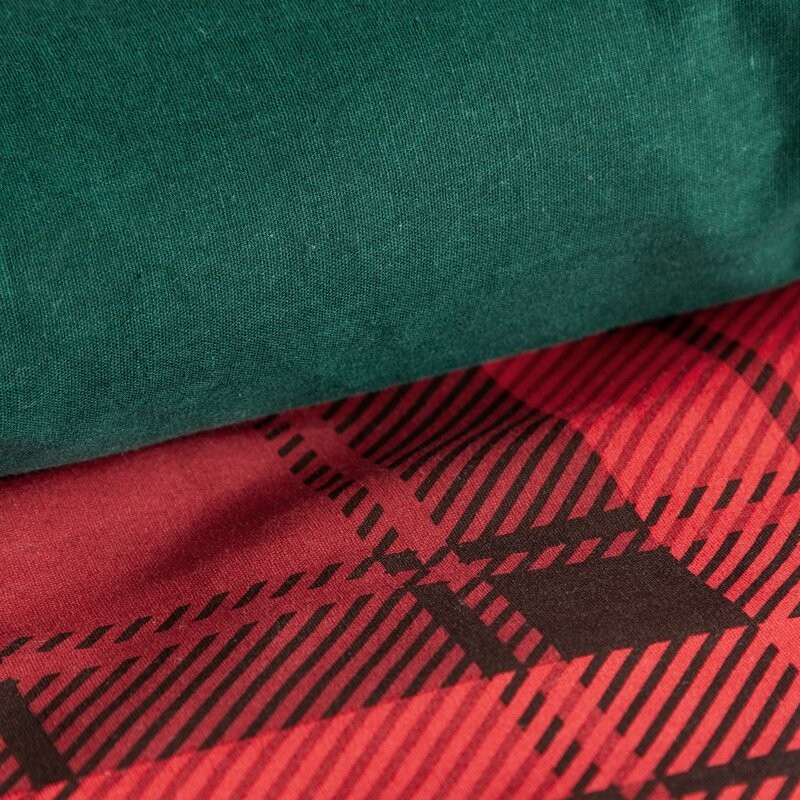 Pościel świąteczna 140x200 cm kolor biały, bordowy z nadrukiem kraty AARON