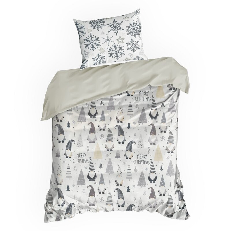 Komplet pościeli bawełnianej z nadrukiem świątecznym szerokość: 140 cm, długość: 200 cm, kolor: biały, Gramatura: 105 GSM, Skład: 100% bawełna