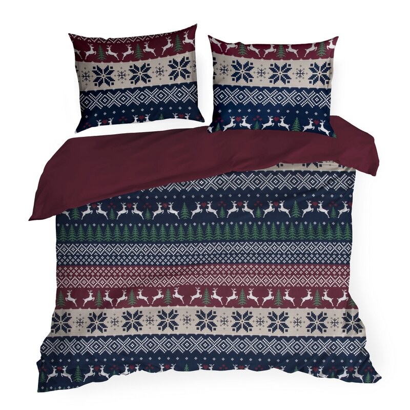 Pościel świąteczna 160x200 cm, kolor bordowy, biały z nadrukiem w stylu skandynawskim MATT