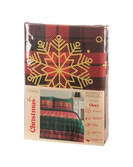 Pościel świąteczna 160x200 cm bawełna ranforce, kolor czerwony, zielony z nadrukiem kraty GLORY