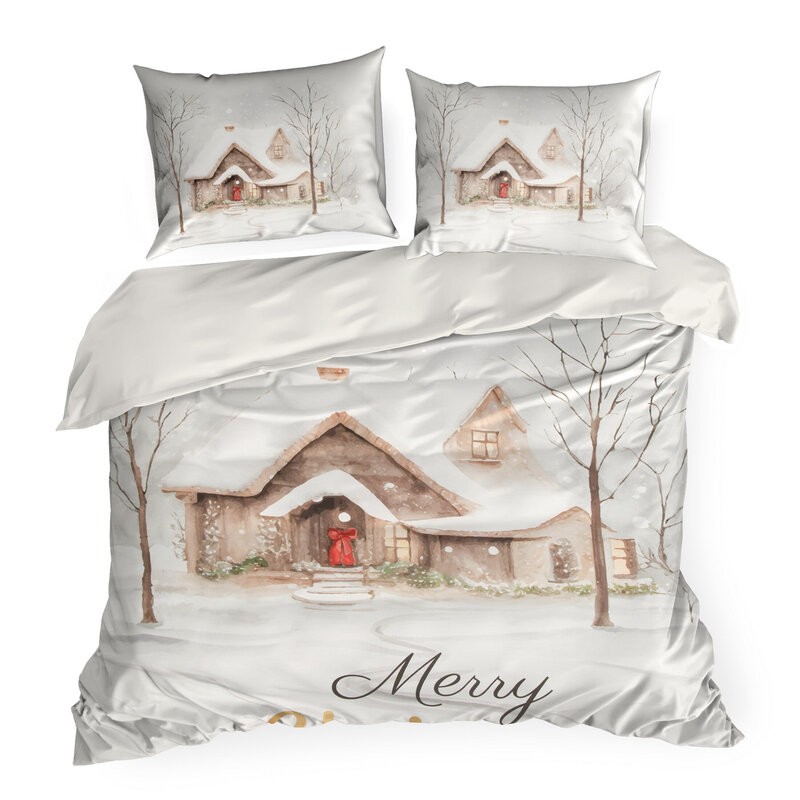 Komplet świątecznej pościeli ROBIN z mikrowłókna zdobiona nadrukiem zimowym