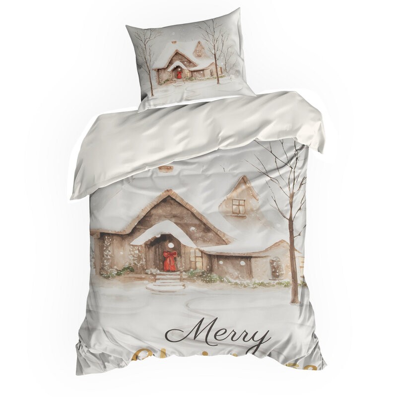 Komplet świątecznej pościeli ROBIN z mikrowłókna zdobiona nadrukiem zimowym