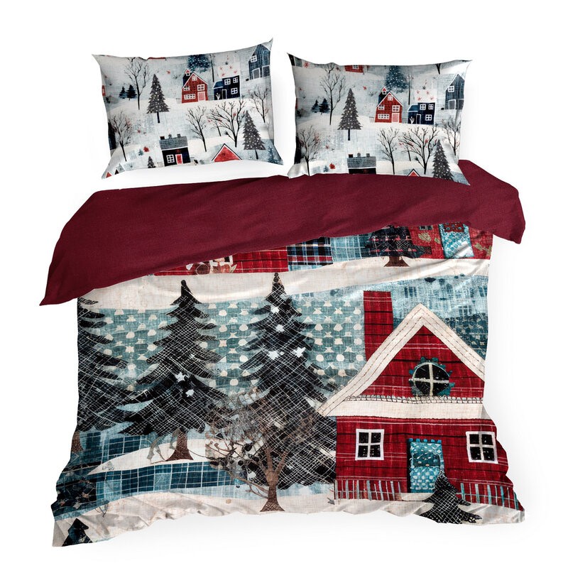 Komplet świątecznej pościeli ROBIN z mikrowłókna zdobiona nadrukiem zimowym
