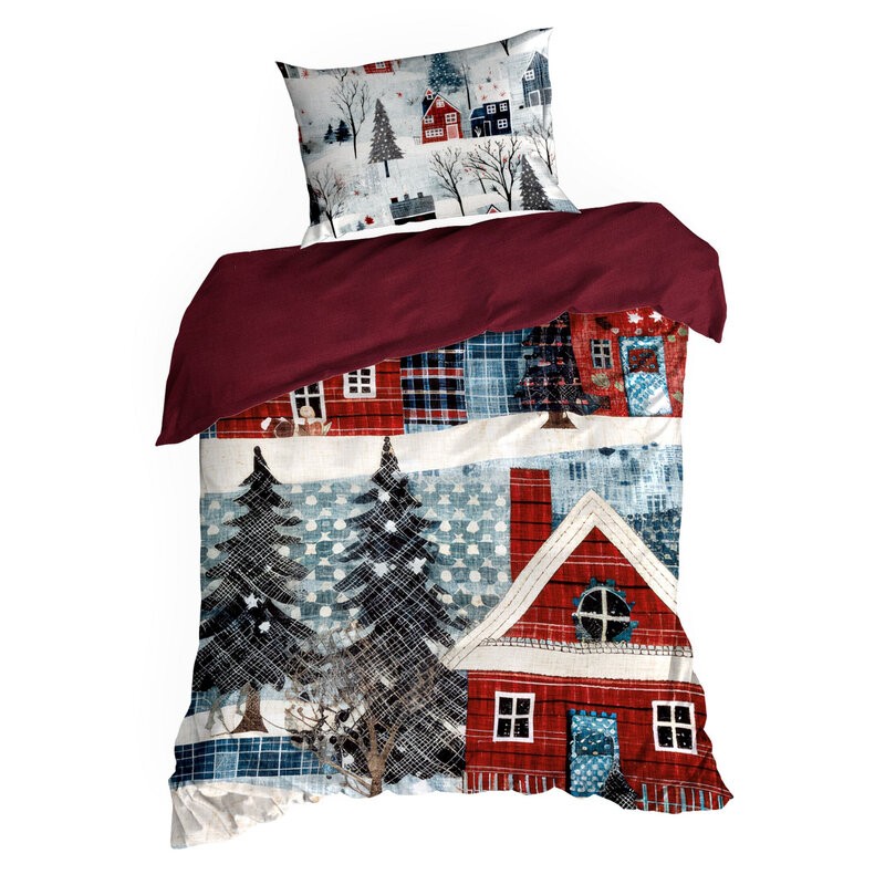 Komplet pościeli bawełnianej z nadrukiem świątecznym szerokość: 140 cm, długość: 200 cm, kolor: bordowy, Gramatura: 105 GSM, Skład: 100% bawełna