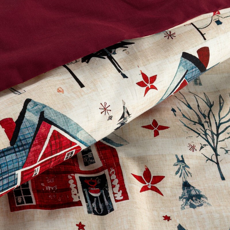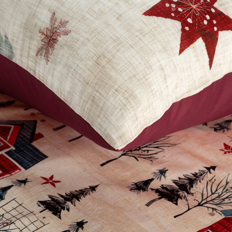 Komplet świątecznej pościeli RIBENO z mikrowłókna zdobionej kolorowym nadrukiem