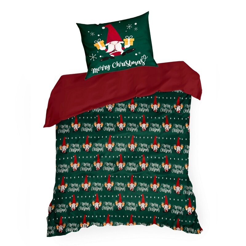 Komplet pościeli bawełnianej z nadrukiem świątecznym szerokość: 220 cm, długość: 200 cm, kolor: ciemnozielony, Gramatura: 105 GSM, Skład: 100% bawełna