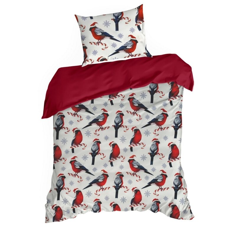 Komplet świątecznej pościeli ROBIN z mikrowłókna zdobiona nadrukiem zimowym