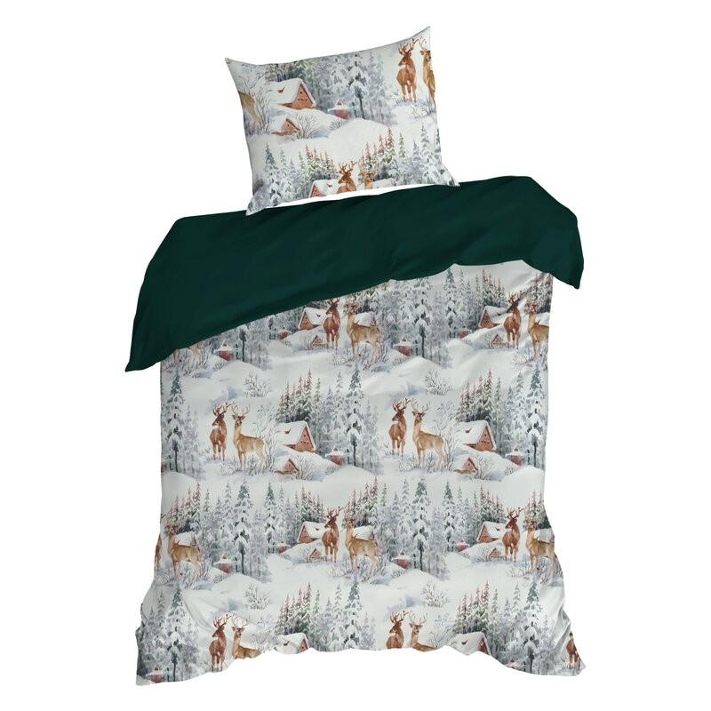 Komplet pościeli z mikrowłókna z nadrukiem świątecznym szerokość: 160 cm, długość: 200 cm, kolor: zielony, Gramatura: 75 GSM, Skład: 100% poliester