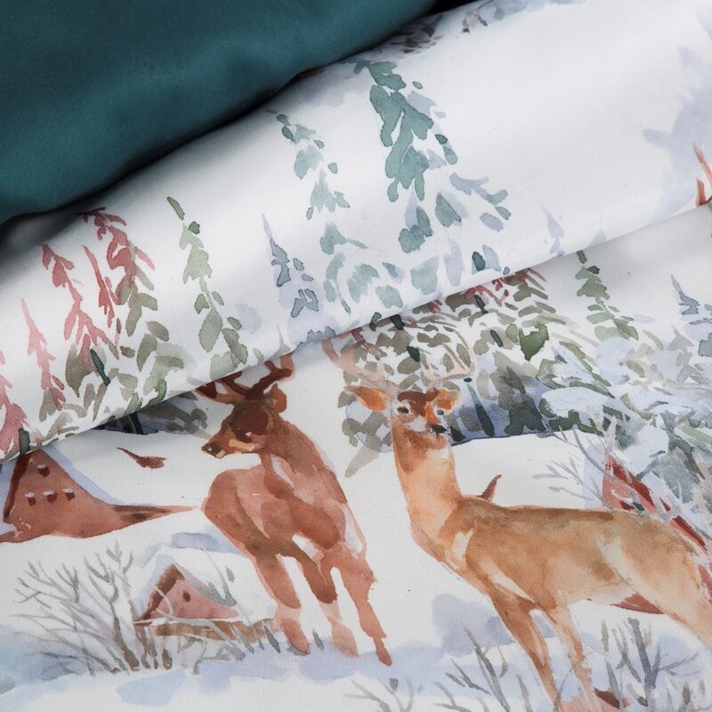 Komplet świątecznej pościeli ROBIN z mikrowłókna zdobiona nadrukiem zimowym