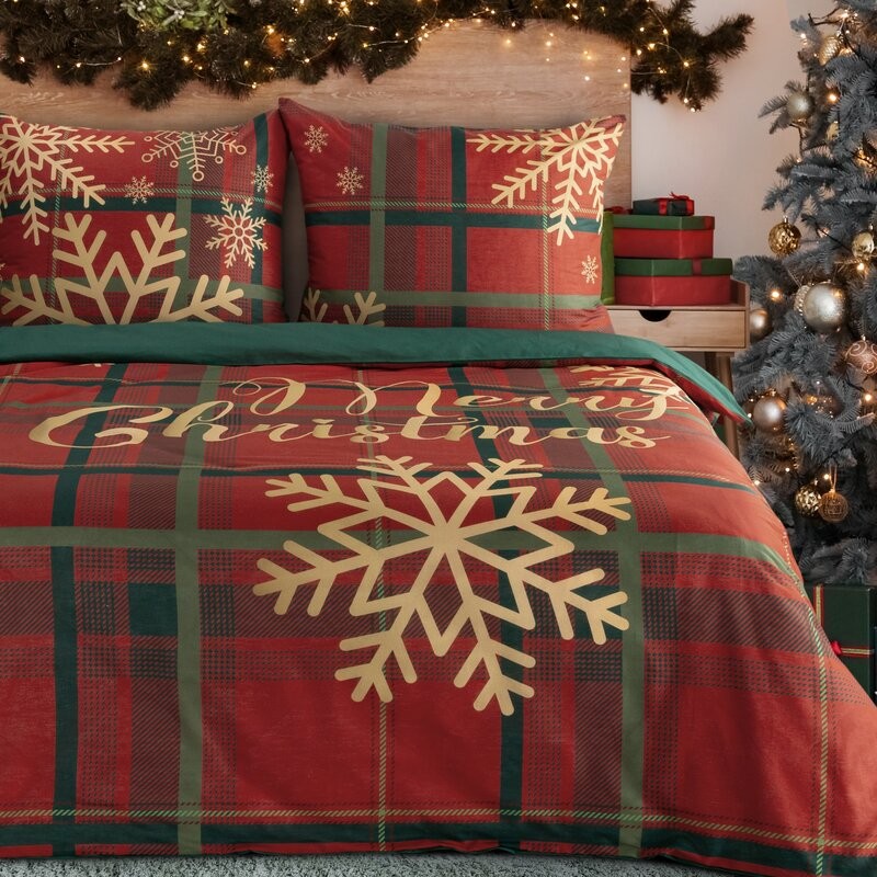 Pościel świąteczna 160x200 cm bawełna ranforce, kolor czerwony, zielony z nadrukiem kraty GLORY