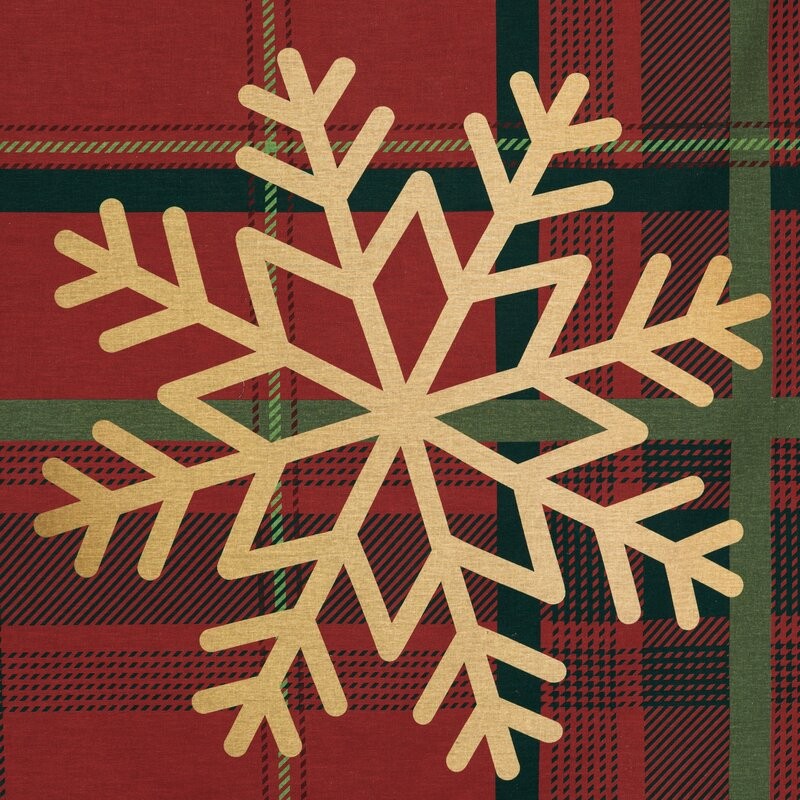 Wzór: klasyczna krata ze złotymi śnieżynkami – świąteczny i elegancki design