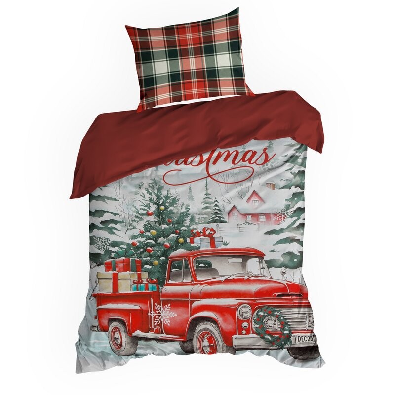 Wprowadź do swojej sypialni przytulny, świąteczny klimat dzięki kompletowi pościeli wykonanej z wysokiej jakości bawełny ranforce. Pościel zdobiona jest uroczym nadrukiem świątecznego auta, który tworzy ciepłą, zimową atmosferę i pasuje do różnych aranżacji wnętrz. Zestaw wyposażony jest w praktyczny, ukryty zamek błyskawiczny, a jego bezpieczeństwo i jakość potwierdza certyfikat OEKO-TEX.