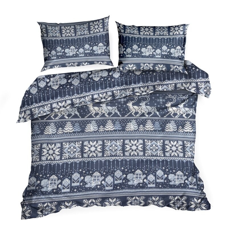 świąteczny Komplet Pościeli Kristy 140 X 200 Cm Granatowy
