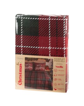 Pościel świąteczna 160x200 cm bawełna ranforce, kolor czerwony, zielony z nadrukiem kraty GLORY