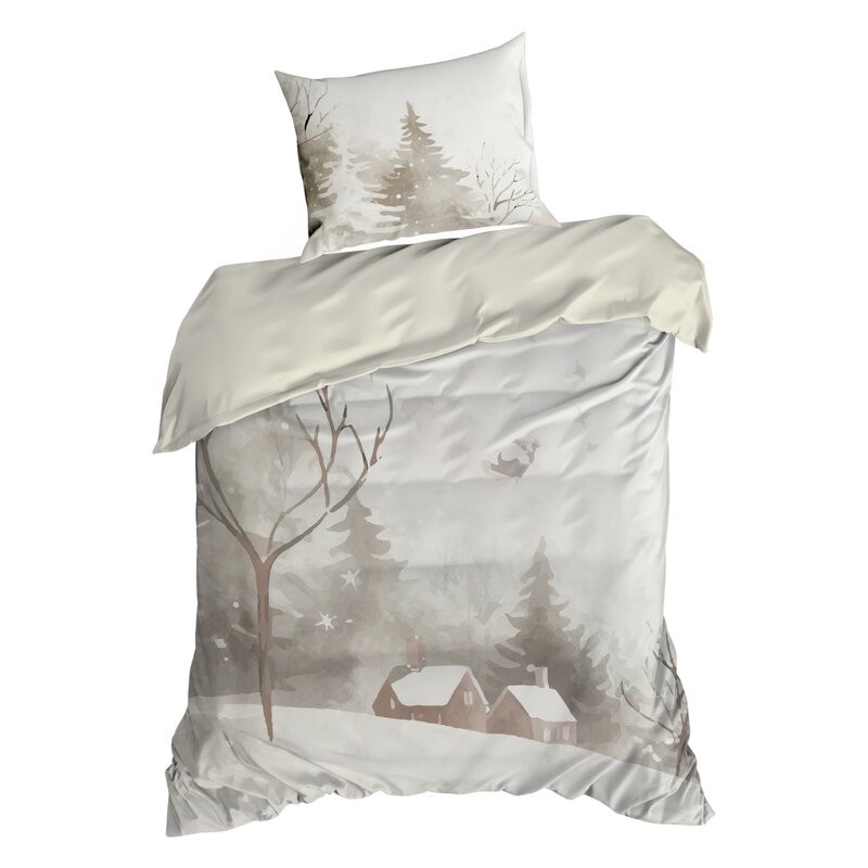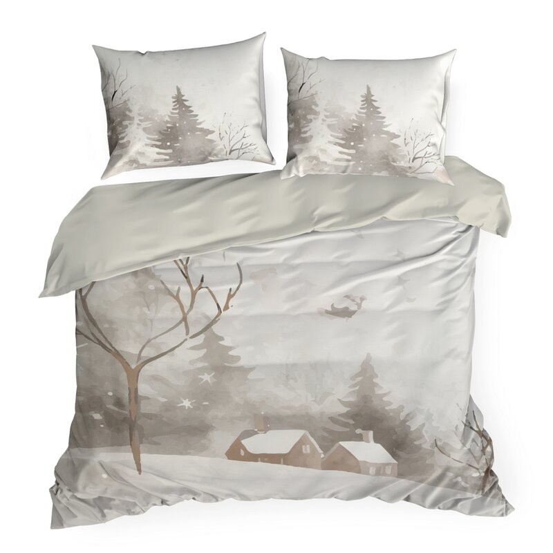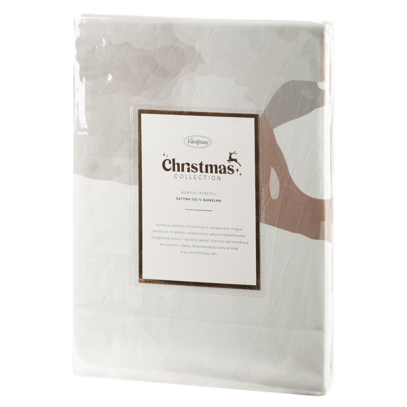Komplet pościeli satynowej z nadrukiem świątecznym szerokość: 160 cm, długość: 200 cm, kolor: biały, Gramatura: 125 GSM, Skład: satyna, 100% bawełna